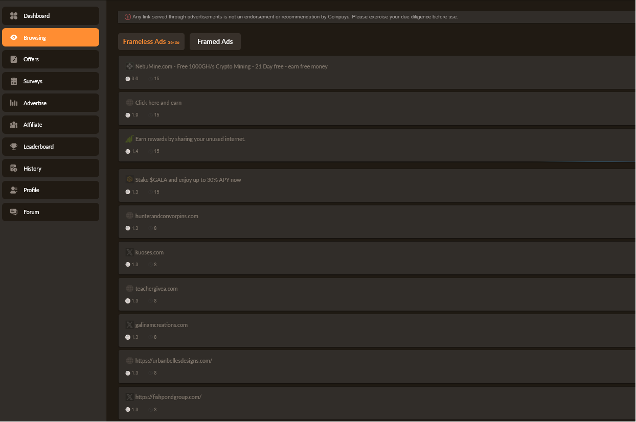 • CoinPayU (oglądanie reklam PTC – ok. 40 dziennie, wypełnianie ankiet, oferty)